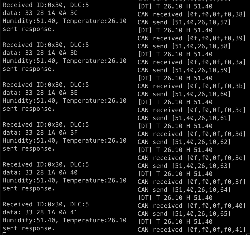 STM32에서 DHT22의 온습도 값을 CAN을 통해 Raspberry Pi로 전송.