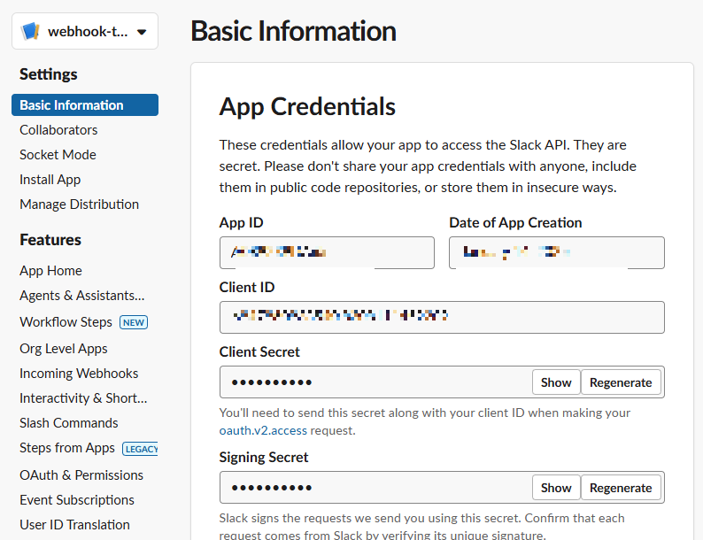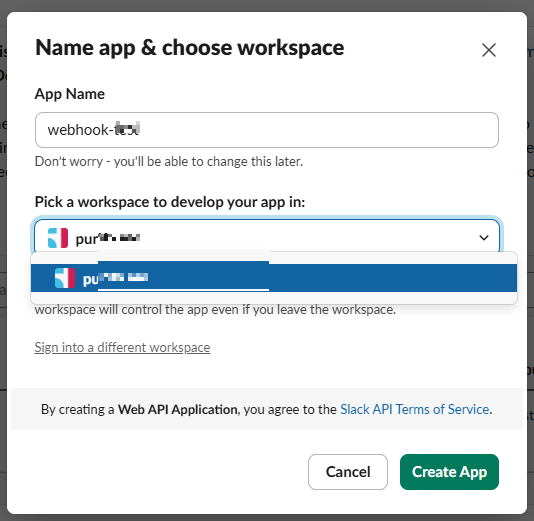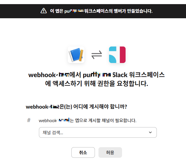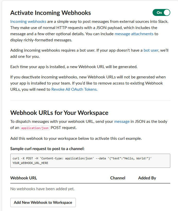 아래의 화면에서 "Add New Webhook to Workspace" 선택.